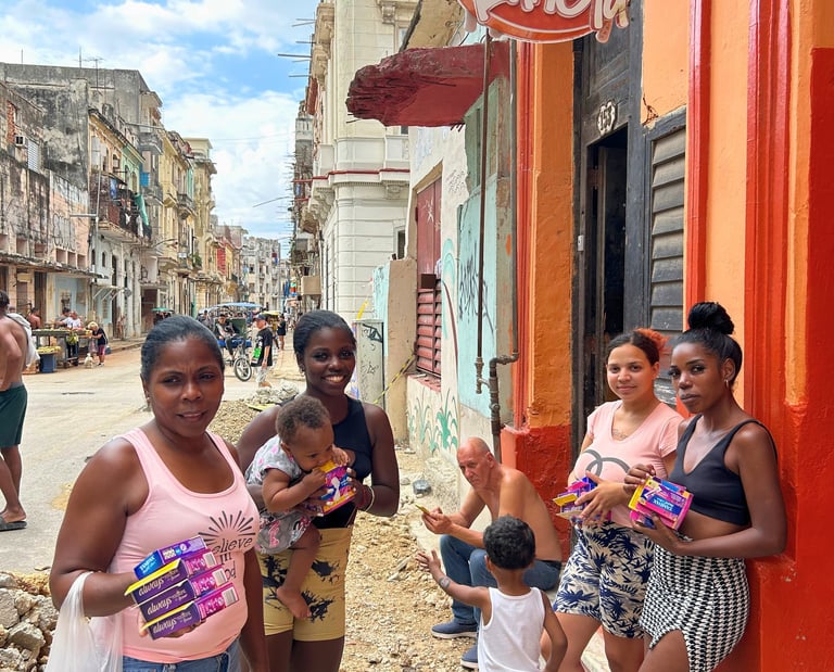 En Cuba, la grave escasez de productos menstruales obliga a muchas mujeres a recurrir al mercado negro, donde los precios están tan inflados que pueden llegar a gastar casi una quinta parte de su salario mensual para cubrir esta necesidad básica. Colaboramos con grupos locales de mujeres para distribuir toallas sanitarias, bragas menstruales y copas menstruales donadas a la comunidad en general. Infórmate sobre cómo puedes participar.